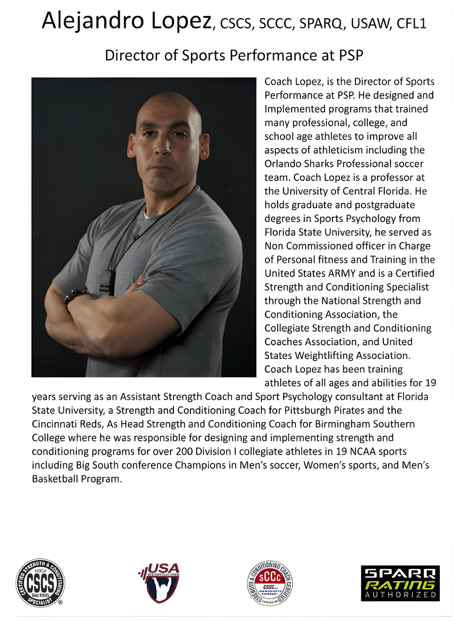 The program uses age-appropriate exercises to begin the process of improving our athletes' general movement mechanics, injury prevention, and increasing strength, speed, and agility. Alex is a certified strength and conditioning specialist through the NSCA, CSCCA, & USAWA. He is an adjunct professor at UCF, has worked with the Orlando Sharks, USA National Softball Team, Pittsburgh Pirates & Cincinnati Reds minor league teams, Head Strength & Conditioning Coach at Birmingham Southern, Assistant Strength Coach & Sport Psychology consultant at FSU, and was an NCO in charge of personal fitness and testing in the US Army.